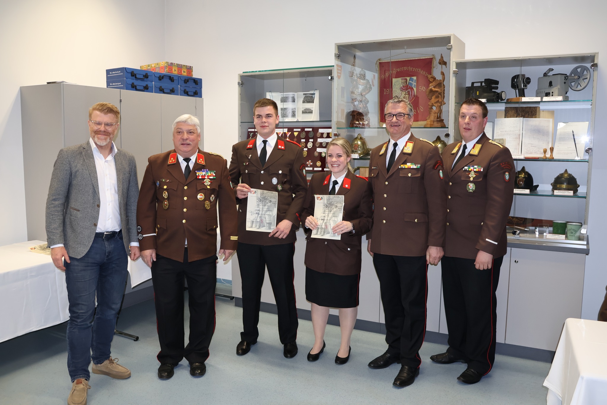 Besonders erfreulich war zudem die Angelobung von vier neuen Kameraden und einer Kameradin, die in den Aktivstand aufgenommen und zum Feuerwehrmann beziehungsweise zur Feuerwehrfrau befördert wurden: Niklas Kranz-Rettenbacher, Hubert Kolb, Franz Nadlinger, Aeneas Fuchs und Beate Keiplinger.