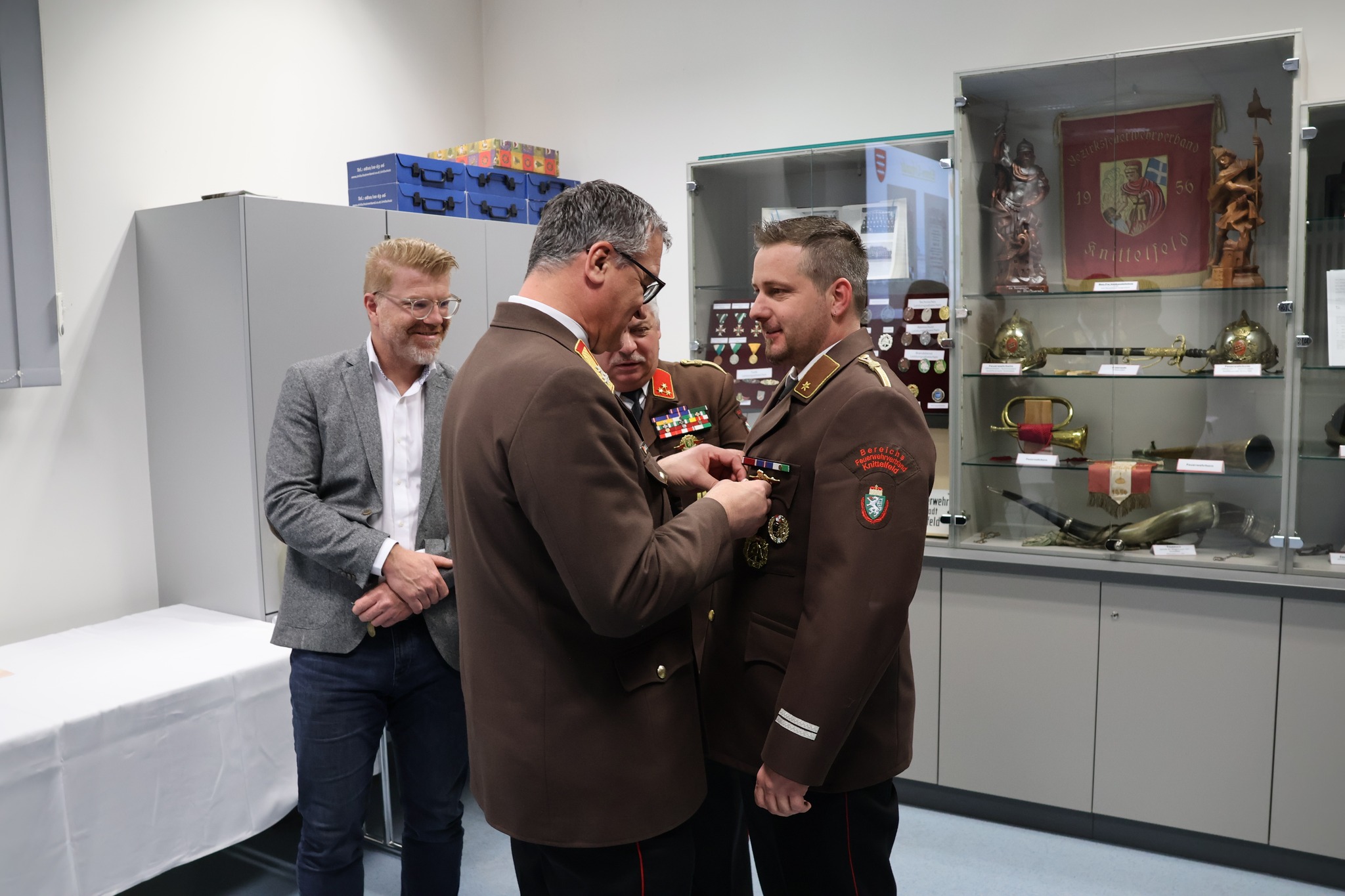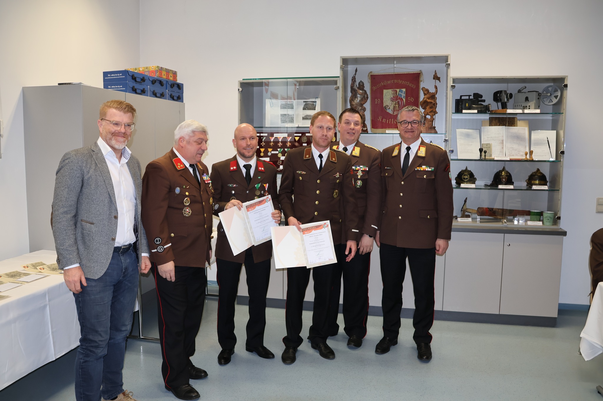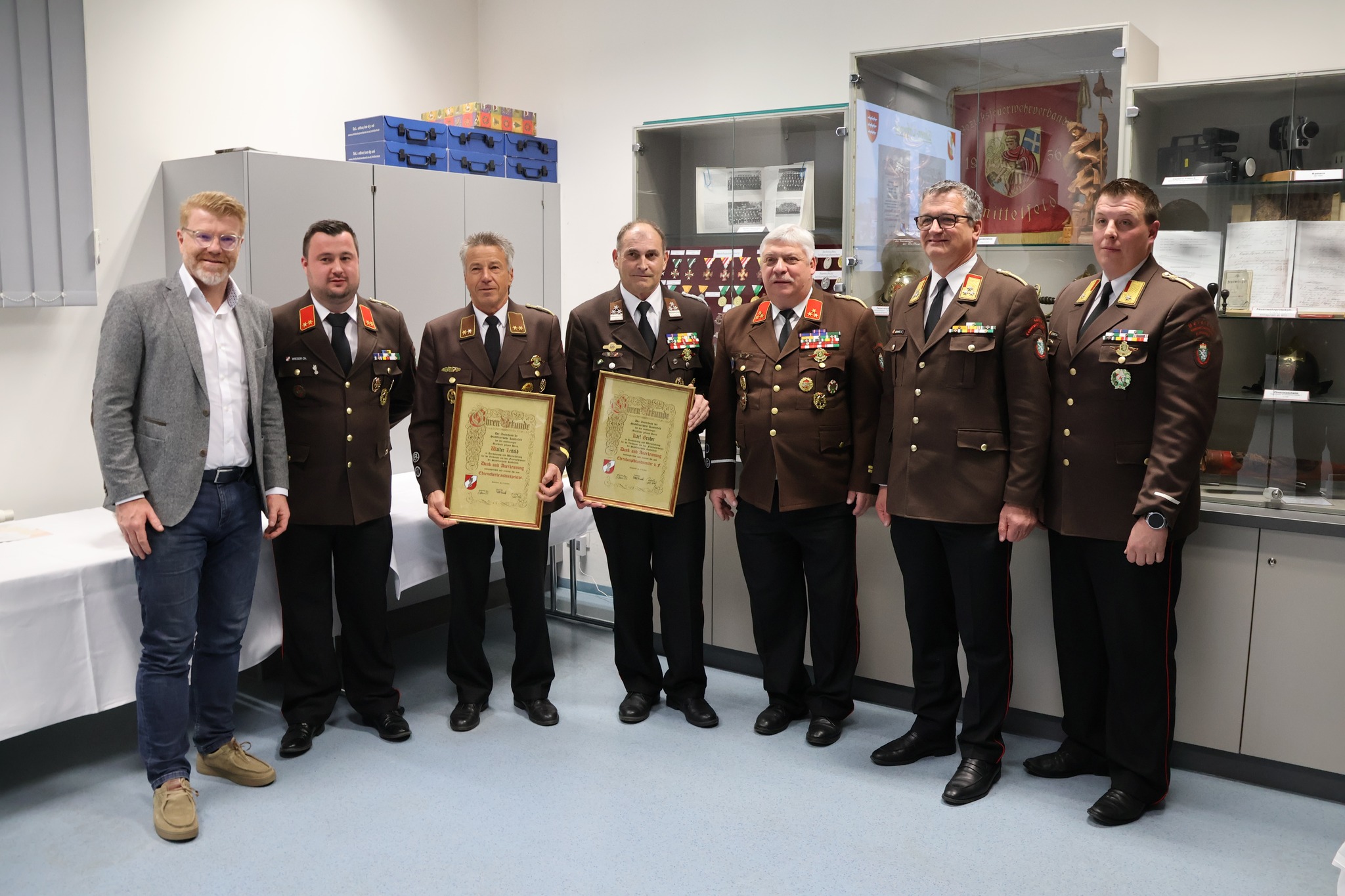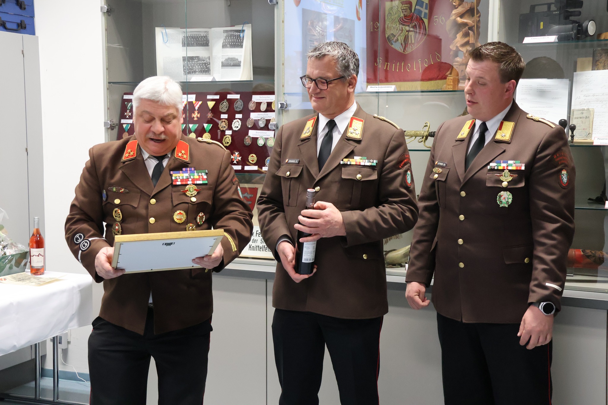 Mit großem Stolz und großer Dankbarkeit wurden drei Kameraden für ihre jahrzehntelange engagierte Tätigkeit besonders geehrt. Oberbrandmeister Josef Eichberger legte nach 32 Jahren sein Amt als Kassier zurück. Gemeinsam mit Hauptbrandmeister Karl Gruber und Oberbrandinspektor Walter Leitold wurde er für seine außergewöhnlichen Verdienste besonders gewürdigt. Karl Gruber wurde zum Ehrenhauptbrandmeister und Walter Leitold zum Ehrenoberbrandinspektor ernannt.