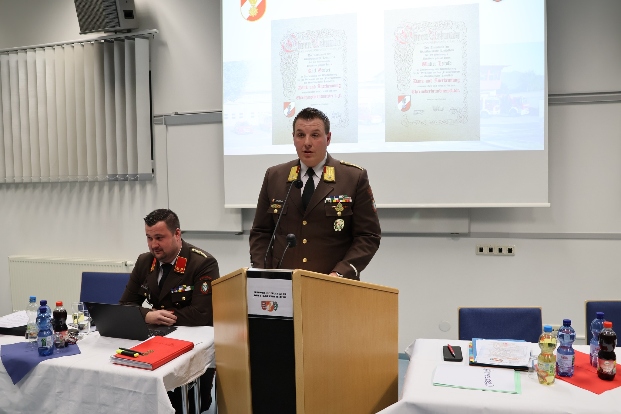 Als Ehrengäste konnten wir Bürgermeister DI (FH) Harald Bergmann, Landesfeuerwehrrat Erwin Grangl, Abschnittsbrandinspektor Christoph Leitner, Hauptbrandinspektor Rudolf Güttl, Oberbrandinspektor Stefan Grangl, Oberbrandinspektor Marvin Renner, Chefinspektorin Anita Weikl, Abteilungsinspektor Daniel Rossmann, Bezirksrettungskommandant-Stellvertreter Patrick Fuchshofer vom Roten Kreuz, Werner Koch als Ortsstellenleiter der Bergrettung Knittelfeld sowie eine Abordnung des Kameradschaftsbundes begrüßen.