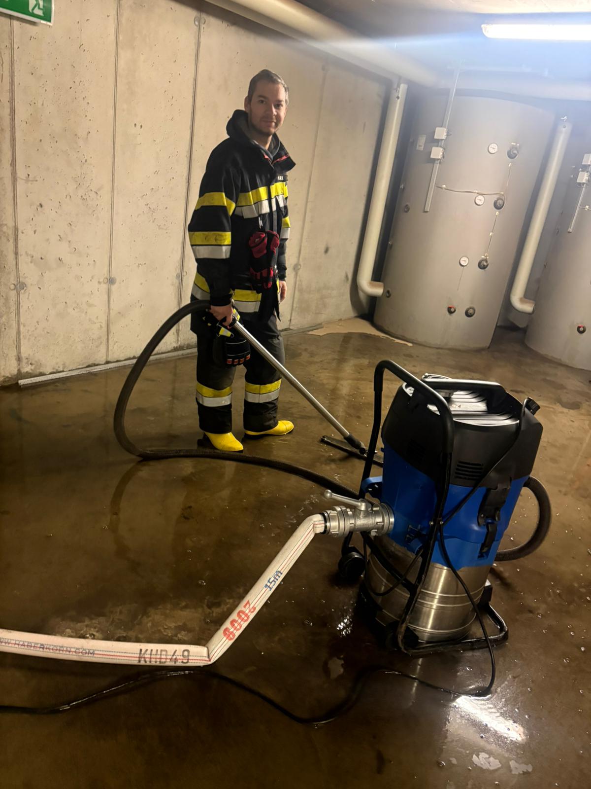 Nach dem Eintreffen am Einsatzort nahm der Einsatzleiter die Lage auf, und unsere Mannschaft begann umgehend damit, den Keller trockenzusaugen.