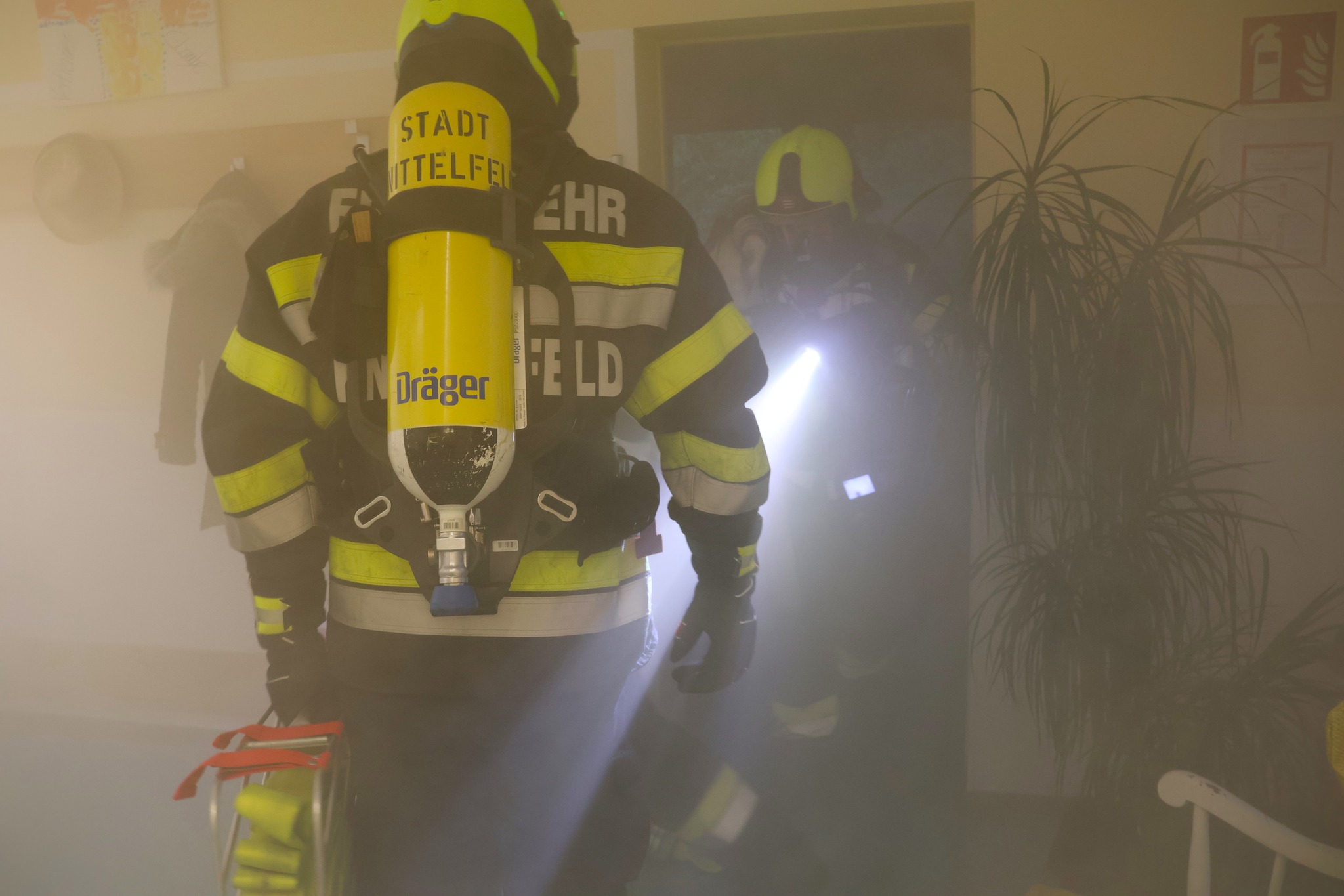 Ein Brand in einem Pflegeheim stellt für Einsatzkräfte eine enorme Herausforderung dar – umso wichtiger sind solche realitätsnahen Übungen, die Abläufe festigen und die Zusammenarbeit stärken.
